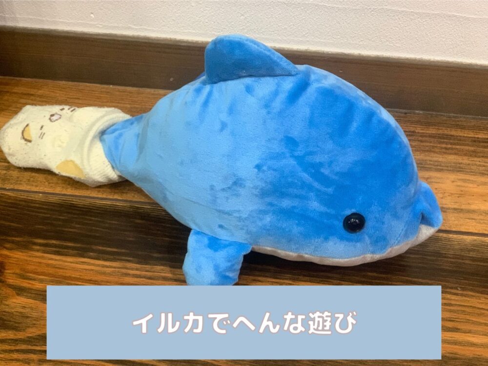 いもうとはクジをしました。いもうとはイルカが欲しくてクジをしたら、当たりました。